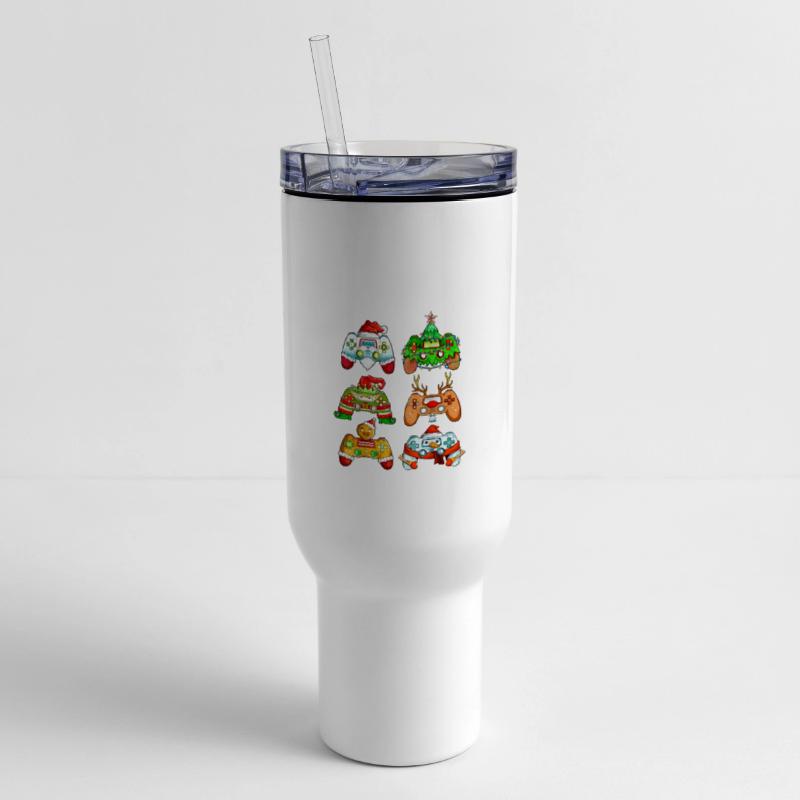 - Travel tumbler with lid and handle