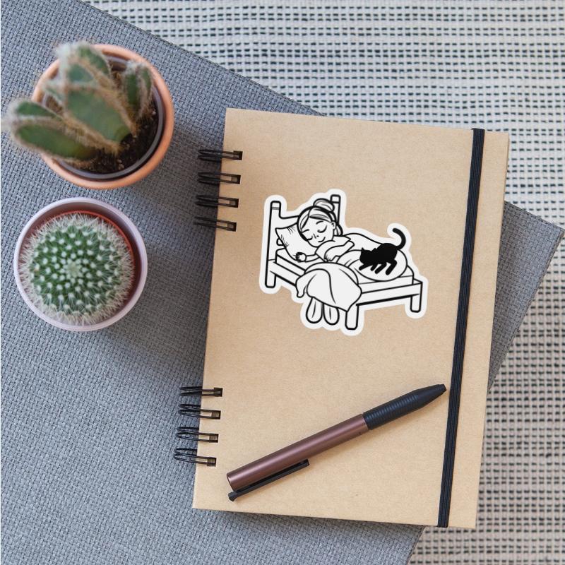 Girl Sleeping In Bed With Black Cat